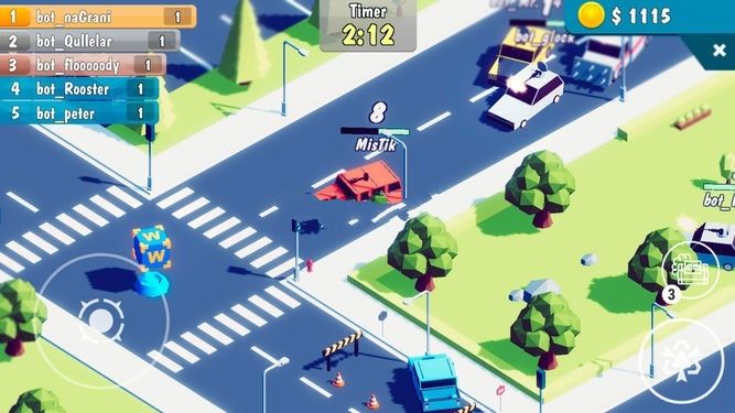 汽车战场io是一款休闲娱乐io类游戏。玩家在游戏中需要驾驶一辆车,在城市中的各个角落中疾驰着,躲避着后方追逐着的这辆。玩家需要在规定的时间中不能被抓住,不然就算是失败啦。你可以在道路上收集各种材料和燃油来保证你自己的车辆能够正常的行驶,你甚至可以给其他的车辆制造困难,给自己创造优势