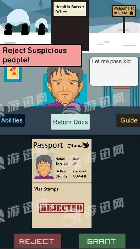 - 你的工作是给予或拒绝过境旅客的签证,迎接你的挑战