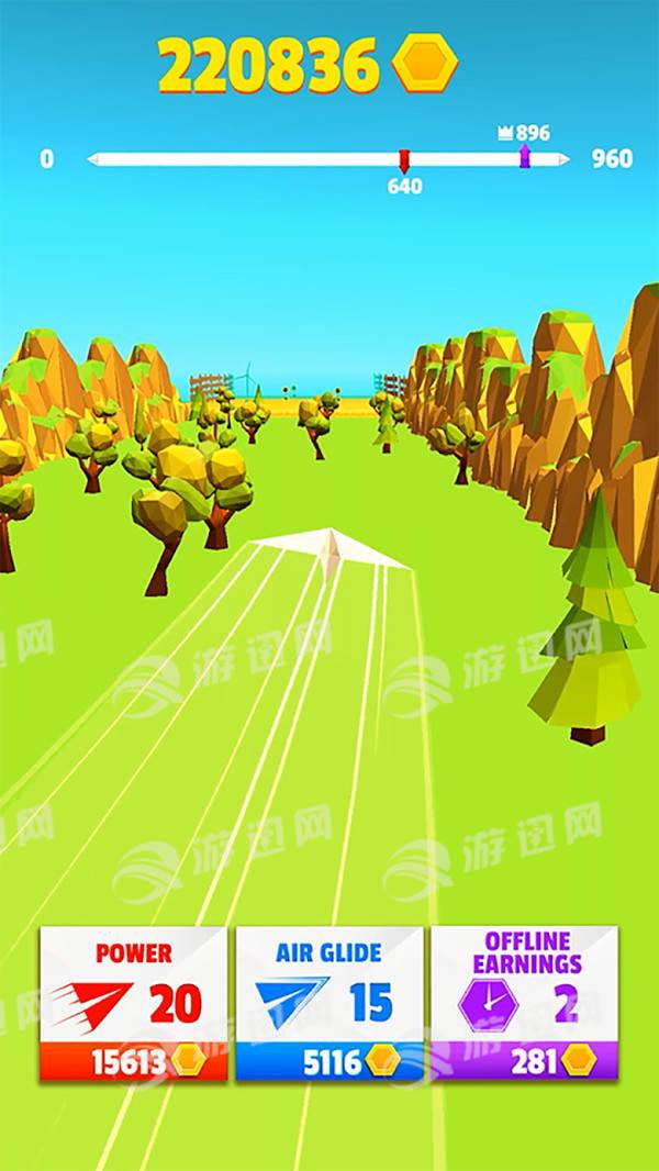 游戏中采用的飞机是充满童年回忆的那种洁白的纸折飞机,每一次飞行都有种儿时的美好回忆。