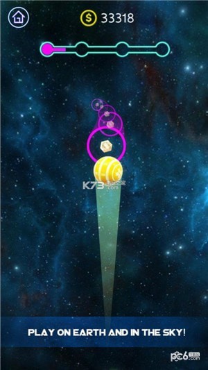 霓虹彩球匆忙之路游戏是一款趣味十足的休闲益智类游戏,玩家需要控制一颗霓虹彩球在刺激的电子音乐的背景下不断的在道路上前进,收集大量的金币,在不断前进的道路上你会遇到各种各样的障碍,你需要展现你精彩的跳跃技巧跃过各种彩色的灯环,收集相同颜色的小球,获得更高的积分和奖励。