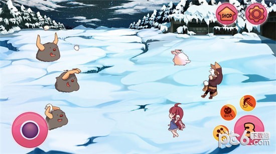 2、你可以通过摇杆控制角色上下灵活的走位,躲避雪怪扔过来的每一个雪球。