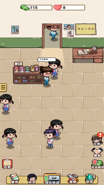 4. 真实时间系统:游戏采用真实时间流逝机制,玩家需合理安排时间,管理店铺运营,体验真实的经营挑战。
