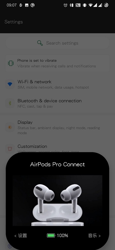 2. 实时电量显示,弹窗中直接展示蓝牙耳机的剩余电量,帮助用户随时掌握电量情况。