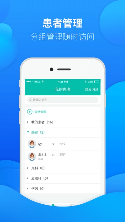 患者管理:根据诊断、病情等多种情况对患者进行个性化分组,随访管理更方便。
