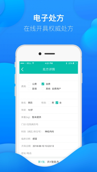 电子处方:电子处方在线开具,且经GDCA电子签名认证,更为权威可靠。