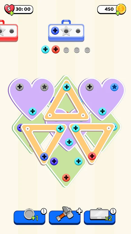 2. 丰富的关卡设计:游戏中设计了多个难度递增的关卡,每个关卡都有不同的螺钉排列和拆卸顺序,挑战玩家的逻辑思维和耐心。