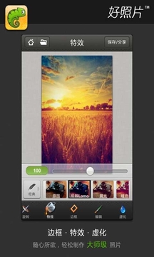 好照片是一款全能型图片处理应用,它包含的特效, 边框, 裁剪, 光影调整, HDR拍摄、背景虚化、拼图、分享等功能将带给您全新的图片处理和分享体验,让您使用Android手机拍摄享受最简单的操作和最专业的图片拍摄和处理效果。