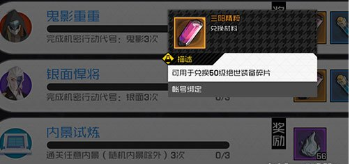 一人之下手游三阳精粹怎么用?下面红鼠网小编为大家带来了相关攻略,想必小伙伴们都很感兴趣吧,那么就快随小编一起来看看相关介绍吧!首先玩家需要能参加代号鬼影这个活动,小编是在49级的时候就能参加了,一天只能参加3次,每次都会奖励三阳精粹这个道具,在做活动的过程中就会获得一些,而完成活动还能奖励,这个道具可以兑换绝世装备的碎片。接下来到津州港地图寻找【小米】NPC,就是参加代号鬼影这个活动的NPC,与她