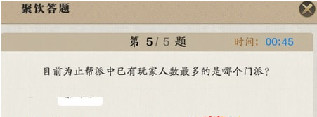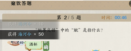 天涯明月刀“觥筹交错”中的“觥”是指什么?相信小伙伴们都很想知道吧,下面就让红鼠网小编就带大家了解一下相关攻略吧,感兴趣的小伙伴们速来围观吧~~ 《天涯明月刀》手游“觥筹交错”中的“觥”是指什么 答案:酒杯 帮派聚饮怎么玩 1、加入帮派 2、每天都有 3、固定时间19:30-20:00 聚饮的时候,需要击杀一次太白逸侠,别忘记了。 完成3个任务,可以获得奖励。 聚饮可以获得大量帮派功勋,用