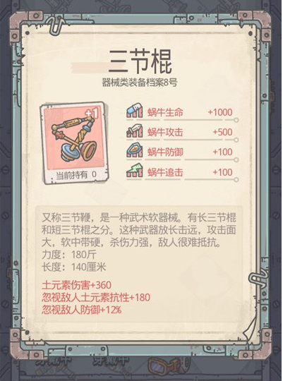 最强蜗牛最强实用装备三节棍属性详解