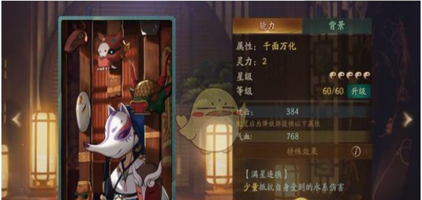神都夜行录拓印千面万化属性怎么样?下面红鼠网小编就带大家了解一下神都夜行录拓印千面万化属性详解,有需要的玩家千万不要错过哦~~ 【千变万化】 稀有度:R 升星前效果: 微量抵抗自身受到的水系伤害 满星连携效果: 少量抵抗自身受到的水系伤害 推荐:防御妖灵 千面万化背景介绍: 面具,是魂魄的表情,是与天地沟通的桥梁,是非人力量的“比喻”。 妖怪佩戴着面具,也给面具赋予了力量很难说清妖怪