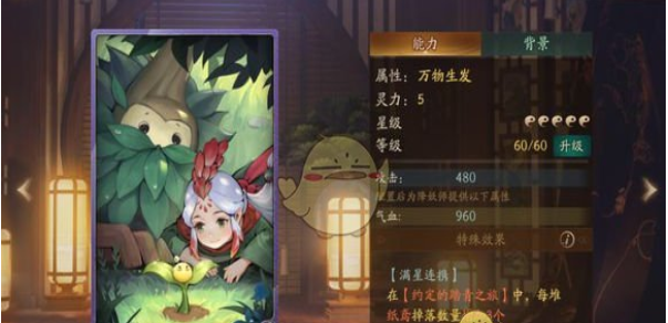 神都夜行录拓印万物生发属性怎么样?红鼠网小编这次给大家带来的就是神都夜行录拓印万物生发属性详解,还不了解的小伙伴快随小编一起来看看相关介绍吧! 【万物生发】 稀有度:SR 升星前效果: 在【约定的踏青之旅】中,每堆纸鸢掉落数量增加2个。 满星连携效果: 在【约定的踏青之旅】中,每堆纸鸢掉落数量增加3个。 推荐:纸鸢活动 拓印点评: 拥有一定的纸鸢掉落增加效果,如果没有萦留枝叶间这个拓印