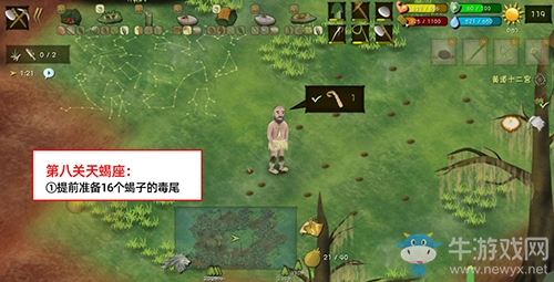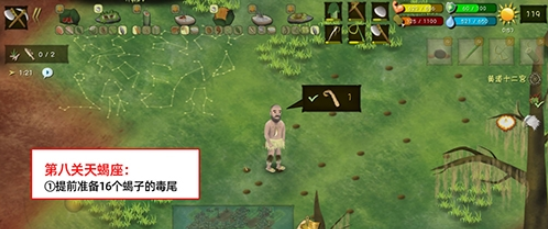 《挨饿荒野》挨饿德的噩梦天蝎座怎么通关,很多朋友在游戏过程中都存在这个疑惑,那就来看看小编为大家分享的攻略吧,感兴趣的朋友可以了解一下哦~ 天蝎座 ①提前准备16个蝎子的毒尾 ②把蝎子的毒尾放入洞里拼成一个天蝎座的图案即可通关 挨饿荒野相关攻略推荐:挨饿荒野挨饿德的噩梦天蝎座通关攻略挨饿荒野挨饿德的噩梦天秤座通关攻略挨饿荒野挨饿德的噩梦处女座通关攻略以上就是的全部内容,更多《