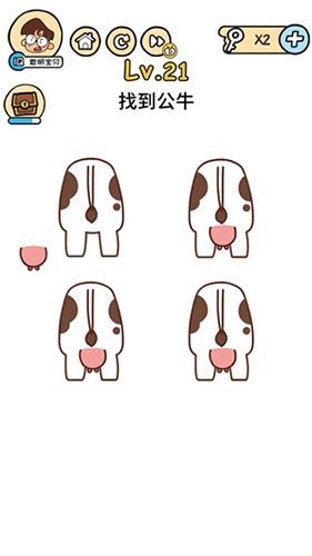 有很多小伙伴们都不知道《脑洞大大大》第21关攻略,那么下面就由小编来为大家带来的相关攻略吧,希望能够帮助到大家,感兴趣的朋友往下看吧~ 脑洞大大大第21关攻略: 问题: 找到公牛? 答案: 第一头的奶是假的将其拉开后点击即可 这个和之前被遮住然后拿掉找到答案其实是一个系列的,不过之前是拿掉之后发现真的答案,这是拿掉之后本身变成答案。以上就是的全部内容,更多《脑洞大大大》相关
