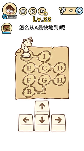 《脑洞大大大》第22关攻略,很多朋友在游戏过程中都存在这个疑惑,那就来看看小编为大家分享的攻略吧,感兴趣的朋友可以了解一下哦~ 脑洞大大大第22关攻略: 问题: 怎么从A最快地到I呢? 答案: 将B与I对换下位置,然后前进一步即可 虽然两点之间支线最短,但是还有更加无耻的方式。上面就是的全部内容了,希望对小伙伴们了解有帮助,更多《脑洞大大大》有关内容敬请关注红鼠网!