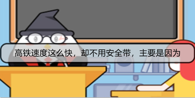今天支付宝蚂蚁庄园的题目已经公布,支付宝中小鸡庄园12月16日的第二个问题是高铁速度这么快,却不用安全带,主要是因为,答对的用户可以领取180g饲料小鸡宝宝饲料作为奖励,不清楚的用户和红鼠网小编一起来看看吧!