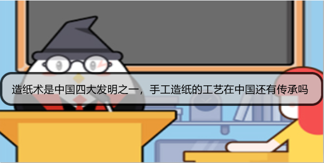 今天支付宝蚂蚁庄园的题目已经公布,支付宝中小鸡庄园9月5日的第二个问题是造纸术是中国四大发明之一,手工造纸的工艺在中国还有传承吗,答对的用户可以领取180g饲料小鸡宝宝饲料作为奖励,不清楚的用户和红鼠网小编一起来看看吧!