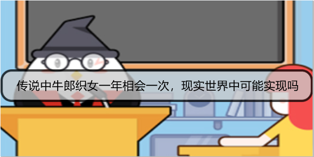 今天支付宝蚂蚁庄园的题目已经公布,支付宝中小鸡庄园8月14日的第二个问题是传说中牛郎织女一年相会一次,现实世界中可能实现吗,答对的用户可以领取180g饲料小鸡宝宝饲料作为奖励,不清楚的用户和红鼠网小编一起来看看吧!