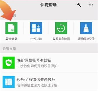 接着点击【快捷帮助】-【异常修复】,